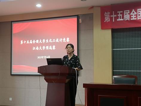 在化工楼B329会议室举办第十五届全国大学生化工设计竞赛江南大学预选赛。化工学院党委副书记田卫平,化工系教师倪邦庆、钮腾飞、张萍波、林良良作为评委出席赛事。预选赛由本科18级辅导员张凯主持。