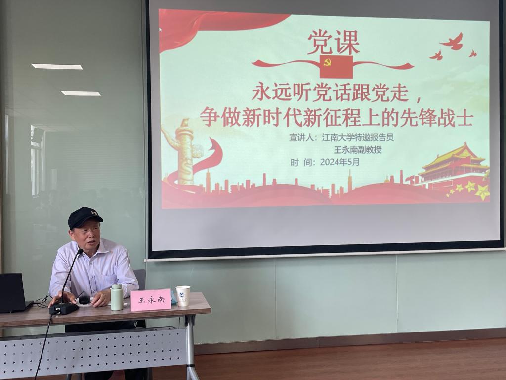 为提升入党积极分子的政治素养和思想觉悟,确保党的后备力量质量,化工学院党委于5月29日下午在化工楼A316会议室举办了第八期入党积极分子培训班。此次培训邀请了校关工委特邀报告员王永南副教授,报告主题为“永远听党话、跟党走,争做新时代、新征程上有共产主义觉悟的先锋战士”。学院党委副书记、副院长董霞,党建辅导员杨璇以及60余名入党积极分子共同参与了本次培训。