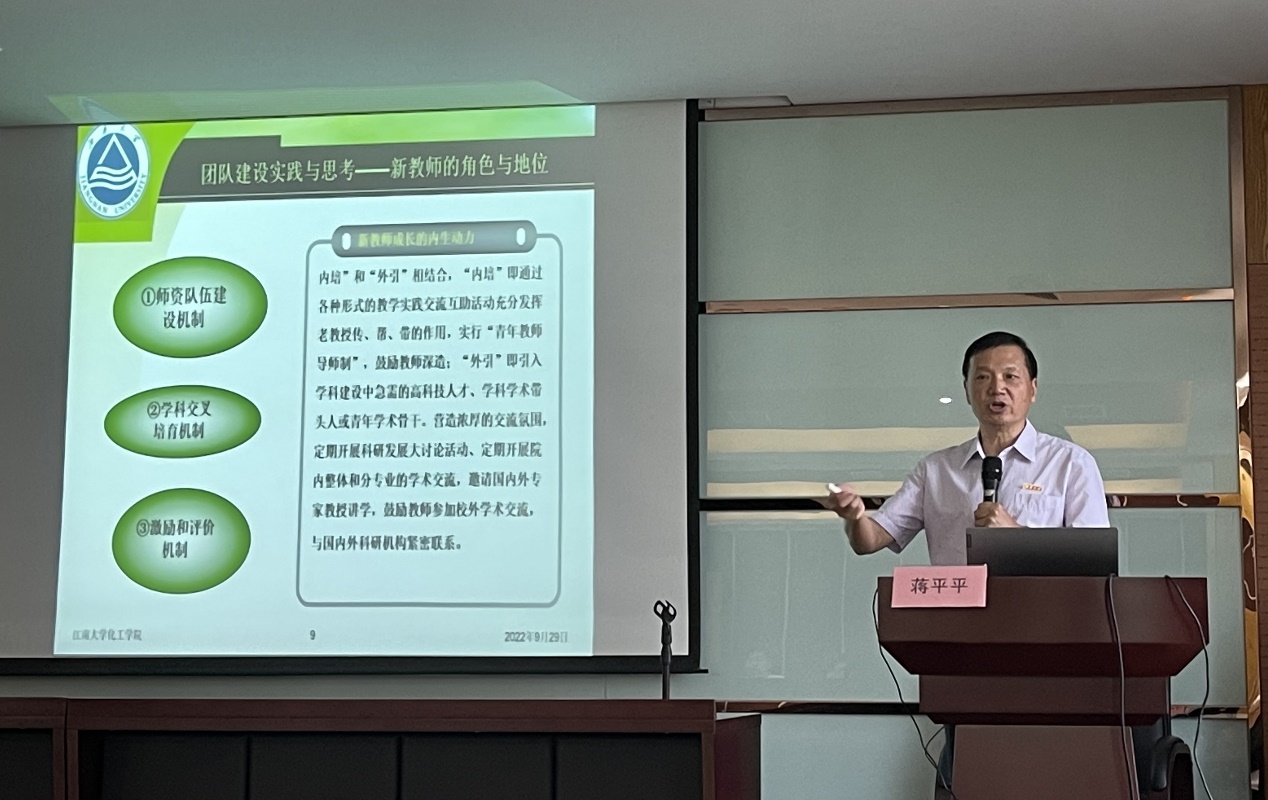 本次交流活动围绕青年教师教书育人、教学与科研和在团队中成长等方面展开,三位特邀专家为大家带来了精彩的报告。同济大学杜建忠教授的报告题目为:“青年教师如何做更好的科研”。他将科学研究分为三种类型:“前无古人,后有来者”、“前有古人,后无来者”、“前有古人,后有来者”。他结合自身开拓“以糖控糖”新领域的经历,强调了青年教师选择研究领域的重要性。他希望,各位青年教师要具备战略性思维,充分发挥自身潜能,结合团队和学科发展需要,做“有组织”的科研。化工学院蒋平平教授以“敬业与奋进,责任与奉献”为主题,阐述了科研团队的内涵与本质、新教师的角色与地位。他提出,青年教师要勇于追求“学院首次”,在知识多元化、学科交叉化趋势加强的背景下,珍惜学院氛围,加快融入团队,实现合作共赢,在成全学生的同时成就自己。江南大学至善学院常务副院长、生工学院刘立明教授的报告题为:”守正创新,甘为人梯,做四新时代好导师“。他从“宽广的学术视野、坚定的研究方向、聚焦的科学问题”等十个方面畅谈了对于科学研究的理解和思考。从新生代“00后”群体特征出发,分享了团队对于研究生能力培养的具体做法。三场报告有思想、有方法,同时三位老师在科研中的成果和培养优秀的案例,也让老师们获得了选择教师这个职业的力量。